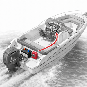 Sur de nombreux bateaux, les batteries et les coupe-circuits sont installés d’origine à proximité immédiate du moteur, à l’arrière.