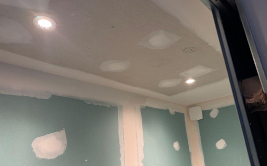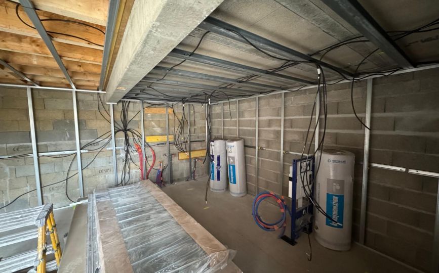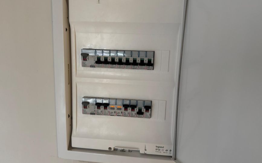 Quelques photos d’une nouvelle installation électrique d’une extension de maison : chambre salle de bain, WC, cumulus, VMC et garage. Un tableau électrique encastré supplémentaire pour satisfaire cette belle extension. Des spots plafond adaptés aux zones de la salle de bain ont été posés.