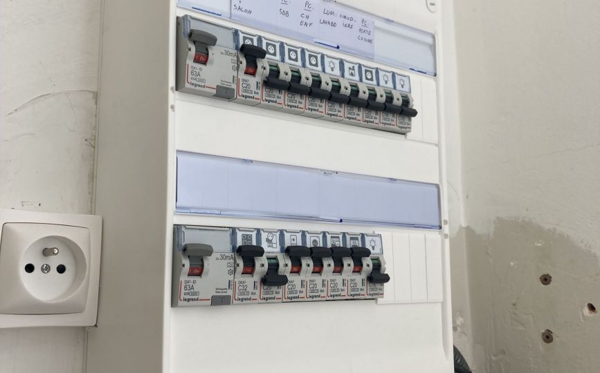 Tableau chez un client avant vs après une mise en sécurité : identification circuit, suppression tableautin et cache des fils sous gaine. Installation nouveau tableau. Faites appel à HDF ELEC pour une mise en sécurité.
